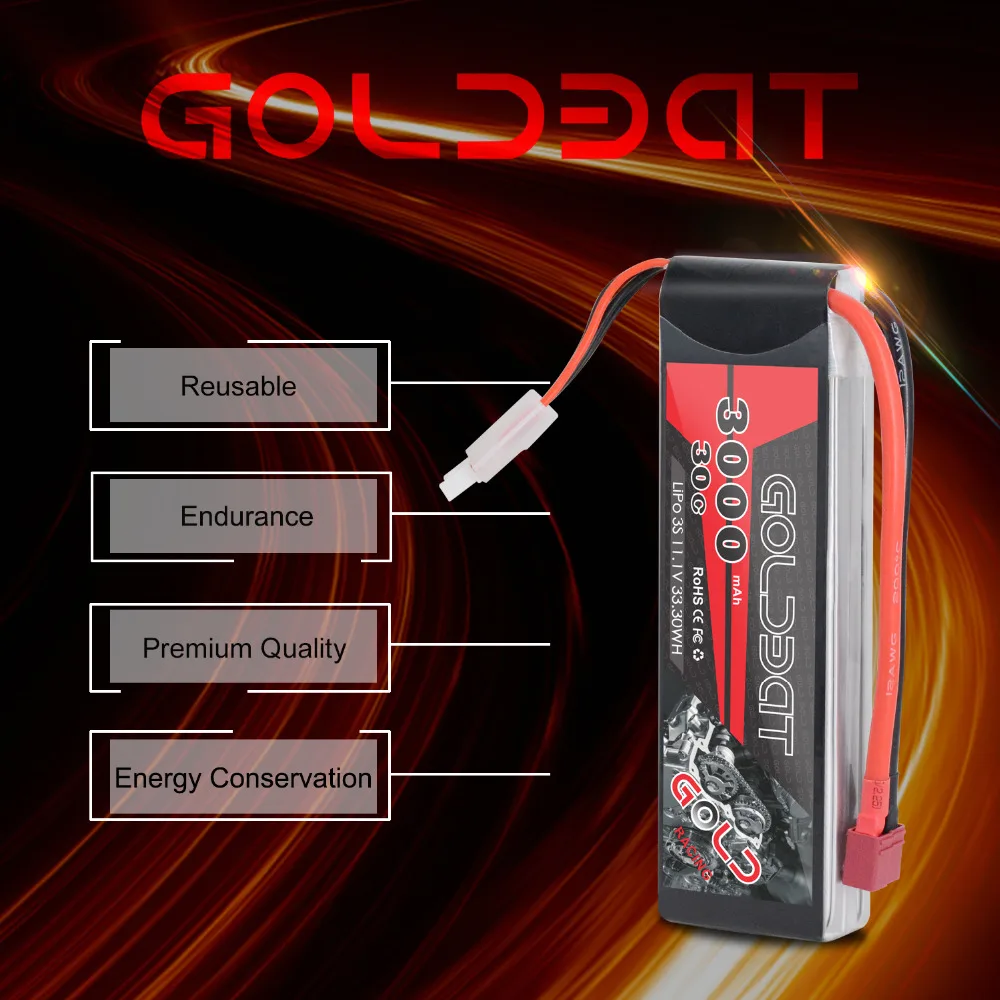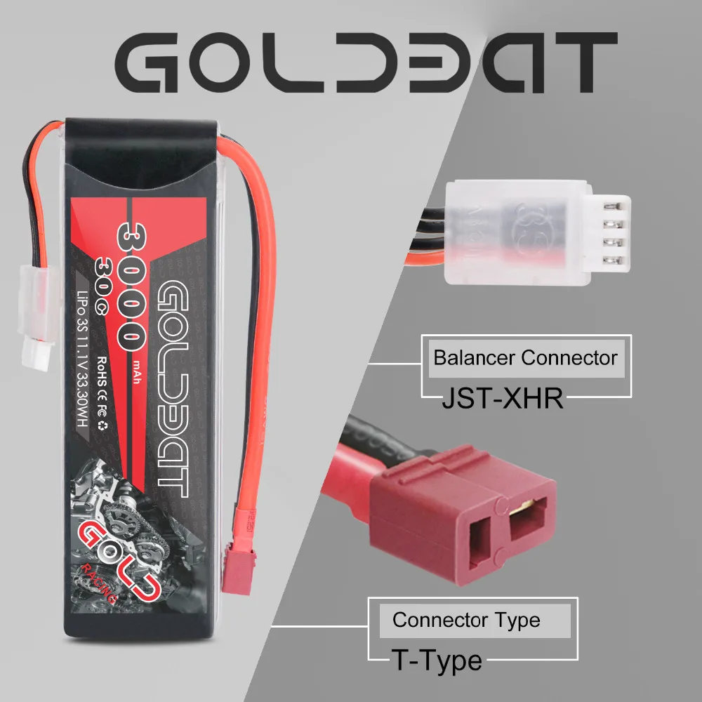 Greatest GOLDBAT 3000mAh RC LiPo Battery 11.1V 3S LiPo Battery for rc car LiPo 3000mah 3S lipo 30C with T-Pl